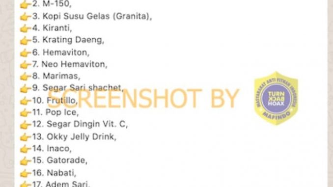 Beredar sebuah pesan dari media sosial Whatsapp yang mencatut nama Ikatan Dokter Indonesia (IDI) dengan narasi yang menyatakan bahwa saat ini tengah ada wabah kanker otak, diabetes dan pengerasan sumsum tulang belakang yang terjadi akibat mengkonsumsi jenis minuman yang disebutkan dalam pesan.