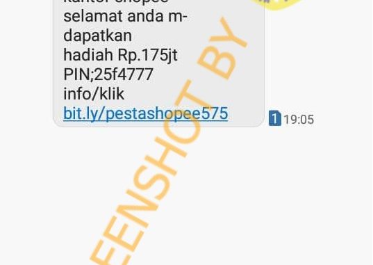 Beredar kabar melalui pesan singkat mengatasnamakan Shopee yang menginformasikan undian hadiah senilai Rp175 juta. Dalam narasinya, pesan menyertakan tautan yang harus diklik oleh penerima. Tautan tersebut memuat persyaratan yang harus dipenuhi oleh calon penerima hadiah, salah satunya membayar sejumlah uang.