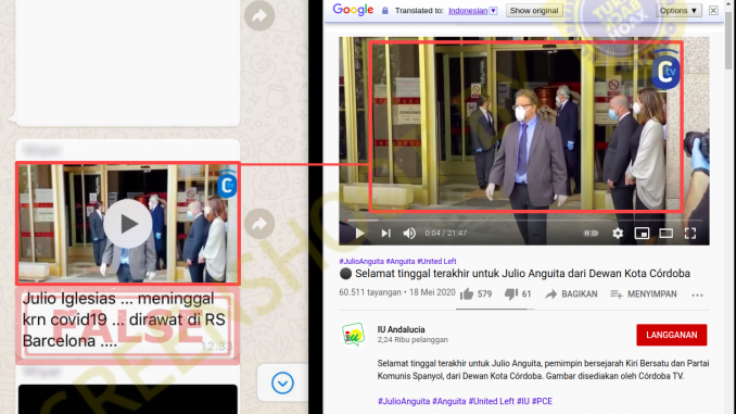 SUMBER membagikan video acara pemakaman Julio Anguita González dengan narasi yang menimbulkan kesimpulan yang keliru, mengaitkan dengan Julio Iglesias.