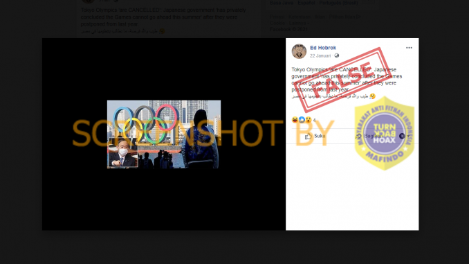 Informasi hoaks. International Olympic Committee (IOC) dan Pemerintah Jepang sudah membantah informasi ini. IOC tidak membatalkan Olimpiade Tokyo 2021 dan ajang yang akan berlangsung di Jepang itu tetap berjalan sesuai rencana.