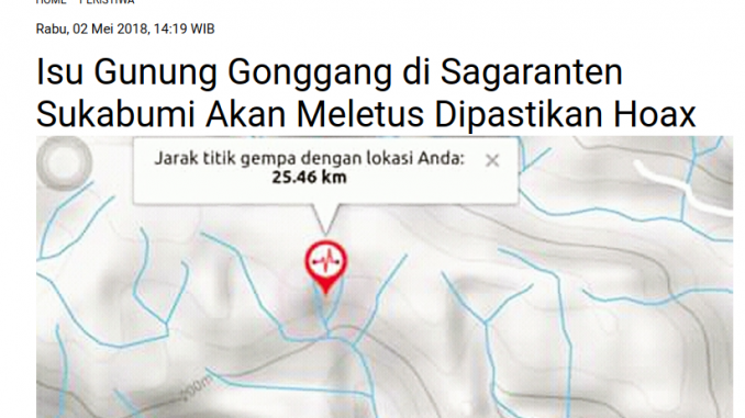 Beredar isu Gunung Gonggang di Sukabumi akan segera meletus. Pasca merebaknya isu tersebut, BMKG akhirnya mengkonfirmasi jika Gunung Gonggang bukanlah Gunung Api Aktif. Ditambahkan pula, jika gempa yang belakangan ini sering terjadi diwilayah setempat, merupakan gempa tektonik. Gempa tektonik sendiri diakibatkan dari adanya pergeseran lempeng bumi, yang berarti gempa tersebut tidak disebabkan oleh aktifitas Gunung Api seperti halnya Gempa Vulkanik.
