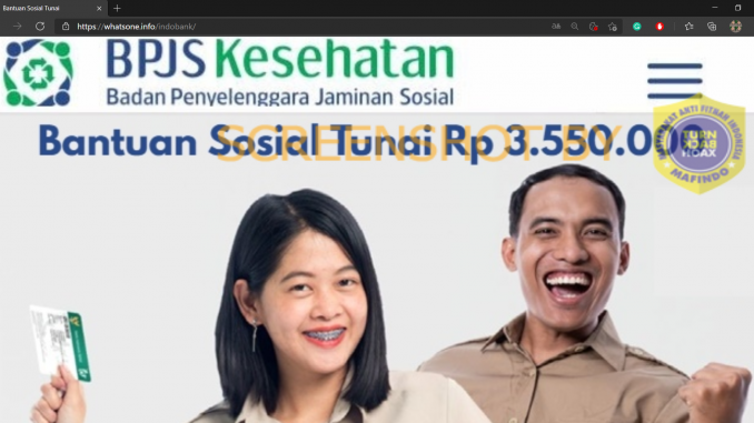 Telah beredar tautan bantuan sosial finansial sebesar Rp3.550.000 bagi pekerja di antara tahun 2000 sampai 2021. Setelah tautan tersebut dibuka, calon penerima diminta untuk mengikuti beberapa petunjuk pada laman bantuan sosial itu.