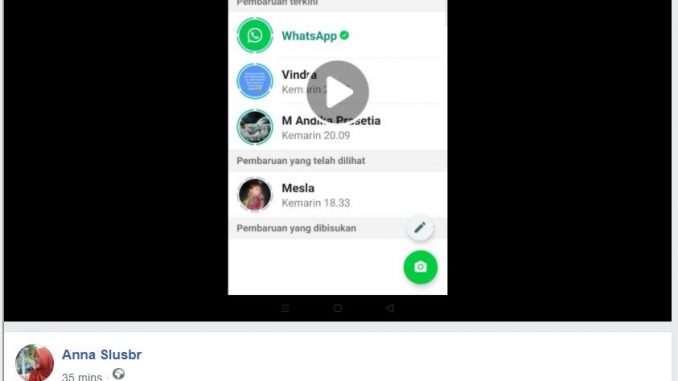 Beredar sebuah postingan dari akun Facebook Anna Slusbr memposting sebuah video tentang status dari Whatsapp dengan narasi bahwa jika membuka status tersebut dapat menyebabkan data pribadi dan akun bank dicuri. Postingan disukai sebanyak 4 kali, dikomentari sebanyak 8 kali, dan disebarkan kembali 4 kali.