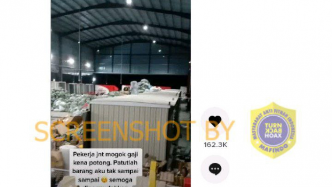 Akun Tiktok @nonihassan7 mengunggah video yang memperlihatkan tumpukan paket di sejumlah tempat dan tidak beraturan. Dalam video tersebut terdapat narasi yang menyebutkan pekerja jnt melakukan mogok kerja karena gaji yang dipotong.