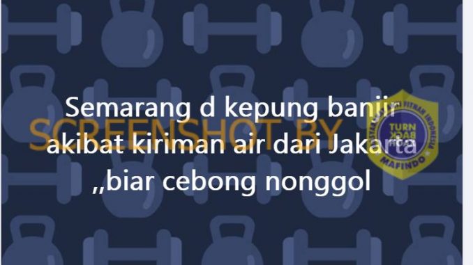Akun Facebook Anjas Meox memposting narasi “Semarang d kepung banjir akibat kiriman air dari Jakarta,,biar cebong nonggol”, pada 8 Febuari 2021. Unggahan tersebut mendapat respon dari warganet sebanyak 24 komentar, 4 kali dibagikan, dan 110 suka.