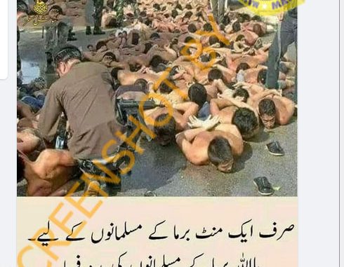 Beredar postingan di Facebook oleh akun bernama Rashad Mehmood dengan Bahasa Urdu dan memperlihatkan sekelompok laki-laki sedang ditahan oleh aparat berseragam militer. Rashad kemudian mengklaim bahwa orang-orang yang ditahan tersebut adalah Muslim Burma, di Myamar. Narasi yang disertakan berbunyi “Ya Allah, bantulah Muslim Burma [Myanmar]. Ucapkan Amin dan bagikan postingan ini. Semoga Allah membalas mu”.
