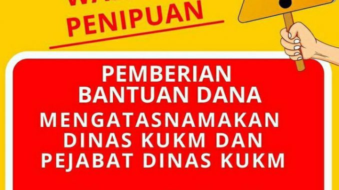 Dinas Koperasi Usaha Kecil Menengah (KUKM) menghibahkan uang sebesar Rp80 juta kepada beberapa pelaku UMKM melalui sambungan telepon. Dalam telepon tersebut, penelepon menyebutkan nama Kabid pemberdayaan dan pengembangan Koperasi, Arpandi dan sekretaris Dinas Nurul Huda.