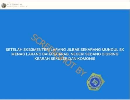“SETELAH SKB3MENTERI LARANG JILBAB SEKARANG MUNCUL SK MENAG LARANG BAHASA ARAB, NEGERI SEDANG DIGIRING KEARAH SEKULER DAN KOMONIS”