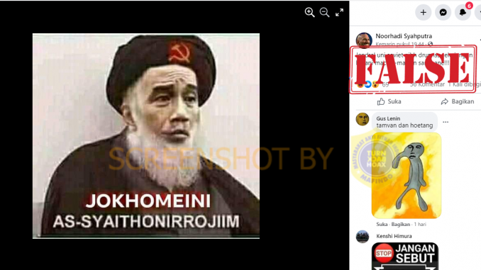Sebuah akun facebook bernama Noorhadi Syahputra mengunggah foto seorang pria berjenggot putih dan mengenakan sorban dengan logo palu arit. Dalam unggahannya, akun tersebut mengklaim bahwa pria tersebut merupakan jendral Uni Soviet bernama Jokhomeini As-Syaithonirrojiim.