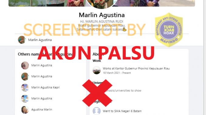 Kepala Dinas Kominfo kota Batam, Azril Apriansyah, menyampaikan bahwa akun Facebook tersebut palsu. Akun asli Ketua PKK yaitu (https://www.facebook.com/marlinagustinarudi).