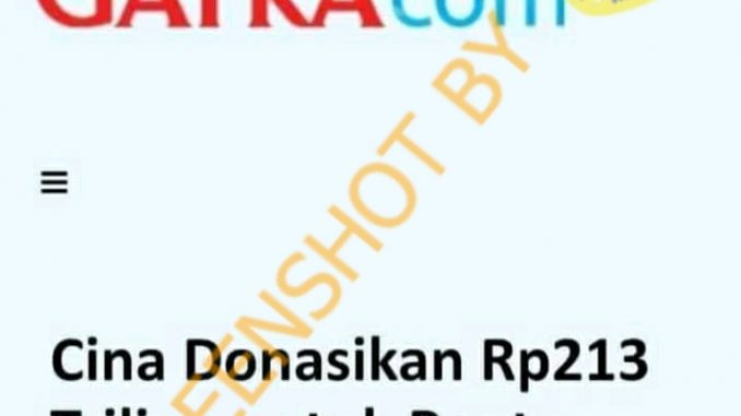 Beredar sebuah unggahan dari media sosial Facebook yang berisi tangkapan layar sebuah artikel dengan judul “Cina Donasikan 213 Triliun Untuk Bantu Palestina”. Unggahan itu pun lantas mengundang komentar dari beberapa masyarakat, mengingat kabar perang Palestina-Israel tengah ramai menjadi perbincangan.