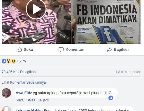 Tidak benar jika Facebook akan ditutup pada tanggal 24 April 2018. Peluang pemblokiran Facebook sendiri memang bisa semakin besar apabila penyidik di Indonesia menemukan unsur dugaan pidana dalam kebocoran data. Dengan pertimbangan, kadar potensi permasalahan yang dapat timbul dari adanya kebocoran data tersebut.