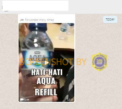 Setelah melakukan penelusuran, hal tersebut tidak benar. Video tersebut merupakan video yang sudah pernah beredar pada tahun 2017 yang lalu. Corporate Communication Director Danone Indonesia pada 2017 lalu, Arif Mujahiddin, meminta masyarakat tidak khawatir dengan produk Aqua. Arif memastikan produk Aqua yang sesuai standar terjamin aman dan sehat. Pihak Aqua meminta masyarakat untuk tidak mengonsumsi air mineral dengan kemasan yang tidak wajar. Jika masyarakat menemukan kejadian yang tidak wajar pada kemasan botol minum Aqua, masyarakat diminta untuk tidak membuang, tidak meminum atau mengembalikan kepada penjual. Masyarakat harap segera menghubungi Aqua Menyapa untuk penelusuran lebih lanjut.