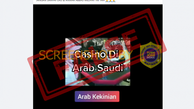 Di video tersebut terdapat narasi “Casino di Arab Saudi” , “Arab Kekinian”