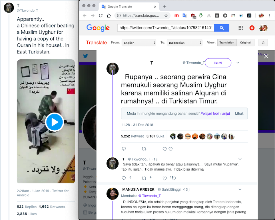 seorang perwira Cina memukuli seorang Muslim Uyghur karena memiliki salinan Alquran di rumahnya! .. di Turkistan Timur."