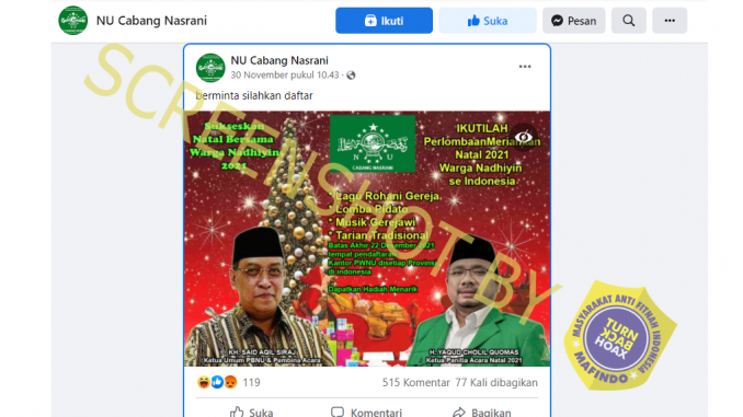 Dengan demikian, klaim NU cabang nasrani menggelar perlombaan Natal 2021 adalah informasi yang tidak benar dan termasuk ke dalam kategori konten imposter.