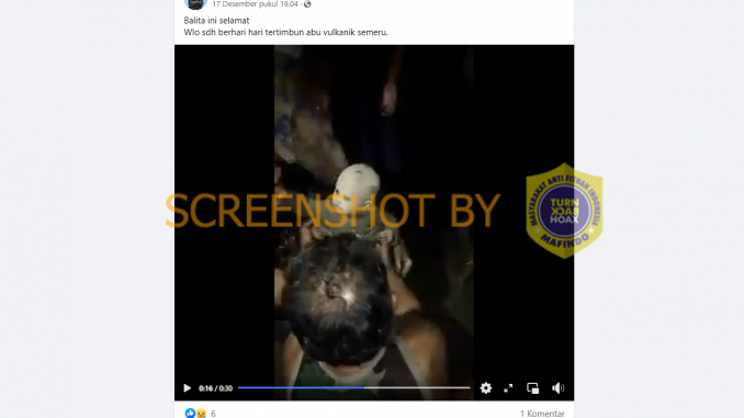 Berdasarkan hasil penelusuran, ada video yang memperlihatkan balita yang tubuhnya berlumur lumpur yang diklaim sebagai balita yang selamat walau sudah berhari-hari tertimbun abu vulkanik Gunung Semeru merupakan klaim yang salah.