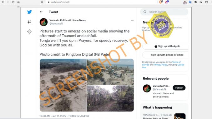 Beredar sebuah informasi di media sosial yang menunjukkan foto-foto dampak vulkanik dan tsunami di Tonga.