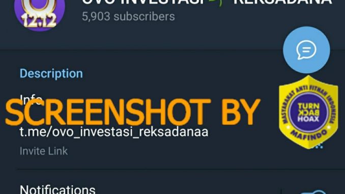 Beredar sebuah akun Telegram OVO yang menawarkan layanan investasi reksadana. Akun tersebut bernama “OVO INVESTASI REKSADANA” (https://t.me/ovo_investasi_reksadanaa) dan menggunakan logo OVO sebagai foto profil.