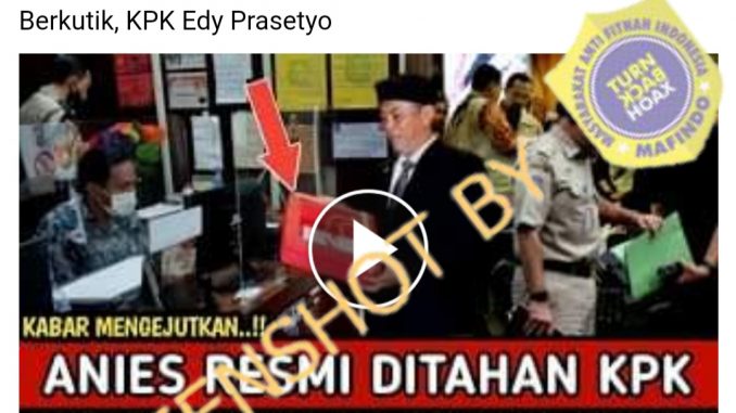 Beredar postingan di Facebook oleh akun bernama Youtube Channel, yang memposting sebuah link video dengan thumbnail “Anies Resmi Ditahan KPK”.