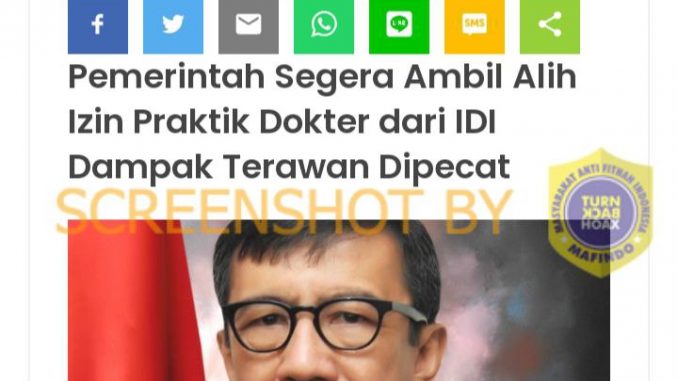 Informasi yang salah. Tidak ada informasi resmi dan valid bahwa pemerintah akan mengambil alih izin praktik dokter dari IDI semenjak dr. Terawan dipecat dari IDI.