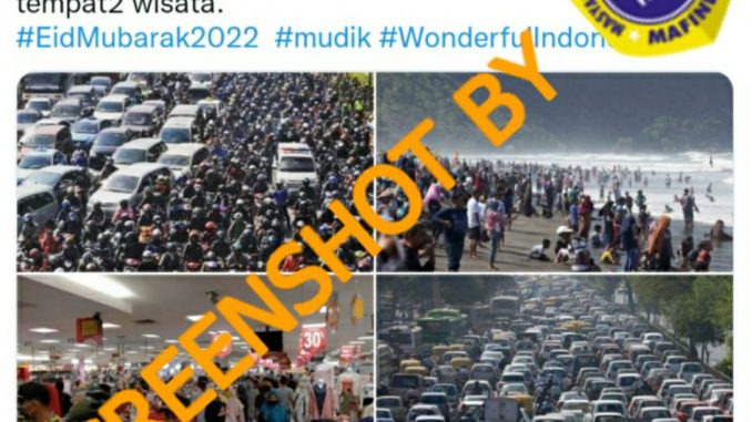 Akun Twitter dengan nama pengguna “Y_Hidayat_” mengunggah beberapa foto yang menunjukkan kerumunan warga di beberapa tempat yang berbeda. Unggahan tersebut juga disertai keterangan yang menyatakan bahwa foto tersebut merupakan foto-foto kondisi Lebaran di Indonesia pada tahun 2022.