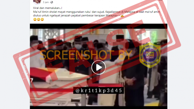 “Viral dan memalukan…! Ma’ruf Amin sholat mayat menggunakan ruku’ dan sujud. Kejadiannya di Malaysia di saat ma’ruf amin diutus untuk ngelayat jenazah pejabat pembesar kerajaan Malaysia”