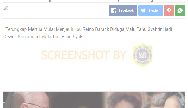 Sebuah artikel dimuat di Cek—info[dot]blogspot[dot]com dengan judul “Terungkap Mertua Mulai Menjauh, Ibu Reino Barack Diduga Malu Tahu Syahrini Jadi Cewek Simpanan Lelaki Tua, Bikin Syok”. Namun judul artikel berbeda dengan isi artikel tersebut. Isi artikel tersebut diketahui bersumber dari artikel situs Herstory.co.id berjudul “Gagal Berkali-kali Jalani Promil Syahrini Disebut Gak Subur, Reino Barack Pasrah Lihat Incess Tak Kunjung Hamil, Janji Lama Terkuak!” pada 12 Mei 2022. Isi artikel tersebut menginformasikan mengenai Syahrini yang dikabarkan sempat melakukan program hamil di salah satu rumah sakit di Jakarta secara diam-diam.