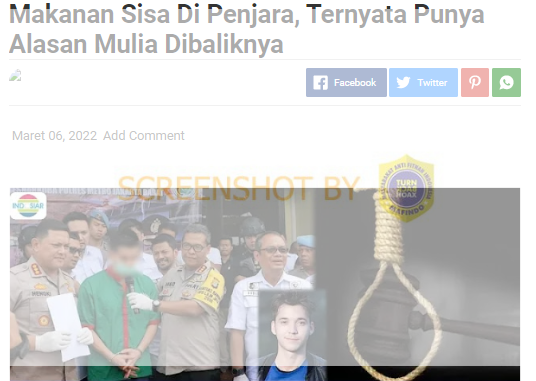 Beredar sebuah artikel dari portal daring aji—berita[dot]blogspot[dot]com yang berjudul “Hukuman Mati Di Depan Mata, Aktor Ganteng Ini Cuma Minta Dibawakan Makanan Sisa Di Penjara, Ternyata Punya Alasan Mulia Dibaliknya”. Dalam thumbnail artikel tersebut menampilkan foto Steffan Wiliam serta terdapat narasi “tangis rekan artis tak terbendung saat mendengar nasib aktor tampan ini dijatuhi hukuman eksekusi ‘mati'”.