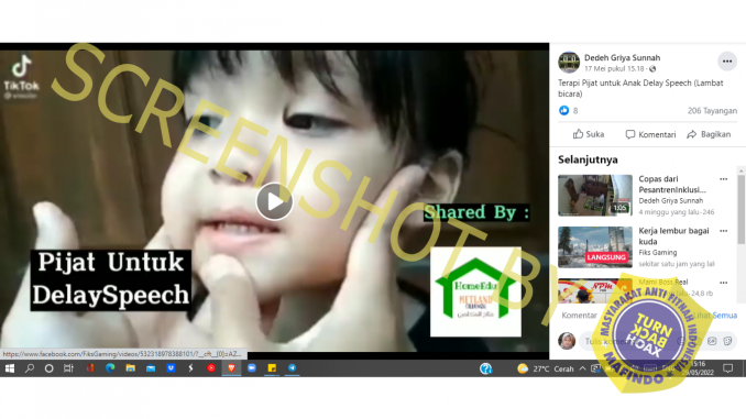 Beredar sebuah video di media sosial mengenai pijat terapi untuk mengatasi masalah delay speech (lambat bicara) pada anak. Dalam video tersebut menunjukkan seorang anak yang dipijat pada bagian muka dan telinga.
