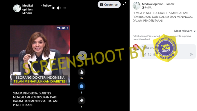 Sebuah video di Facebook menampilkan presenter nasional Najwa Shihab dan mantan Menteri Kesehatan Terawan Agus Putranto mempromosikan dan merekomendasikan sebuah obat diabetes.