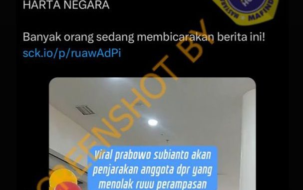 Unggahan berisi klaim “Prabowo akan penjarakan anggota DPR yang menolak RUU perampasan aset” merupakan konten dengan konteks yang salah (false context).