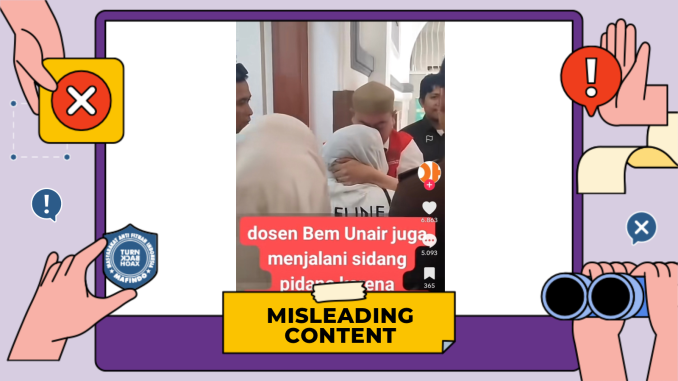 Unggahan video berisi klaim “dosen Unair disidang pidana usai suruh mahasiswa berdemo” merupakan konten yang menyesatkan (misleading content).