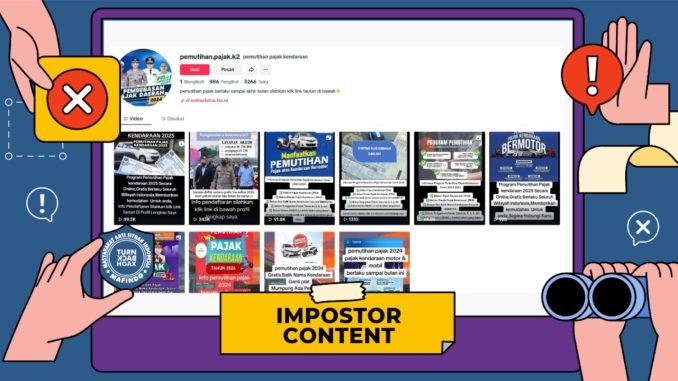 Akun beserta tautan “pemutihan pajak 2025” merupakan konten tiruan (impostor content).