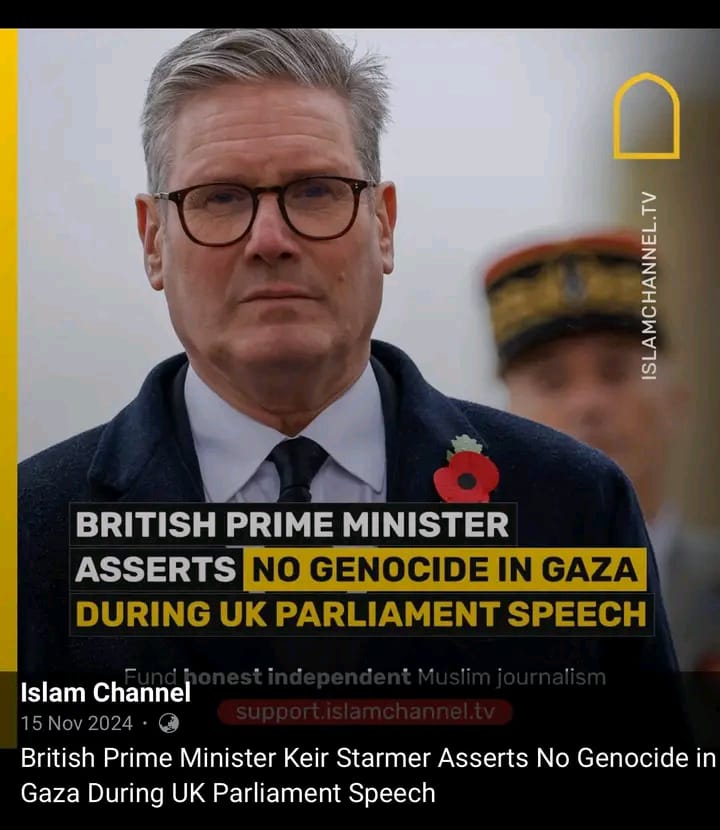 Menjawab kritik itu, Perdana Menteri Inggris, Keir Starmer, mengatakan alasan militer Israel membunuh warga Palestina di Gaza karena serangan kelompok Hamas pada Oktober 2023. Dia menyatakan perbuatan pemerintah Israel tidak menggambarkan genosida.