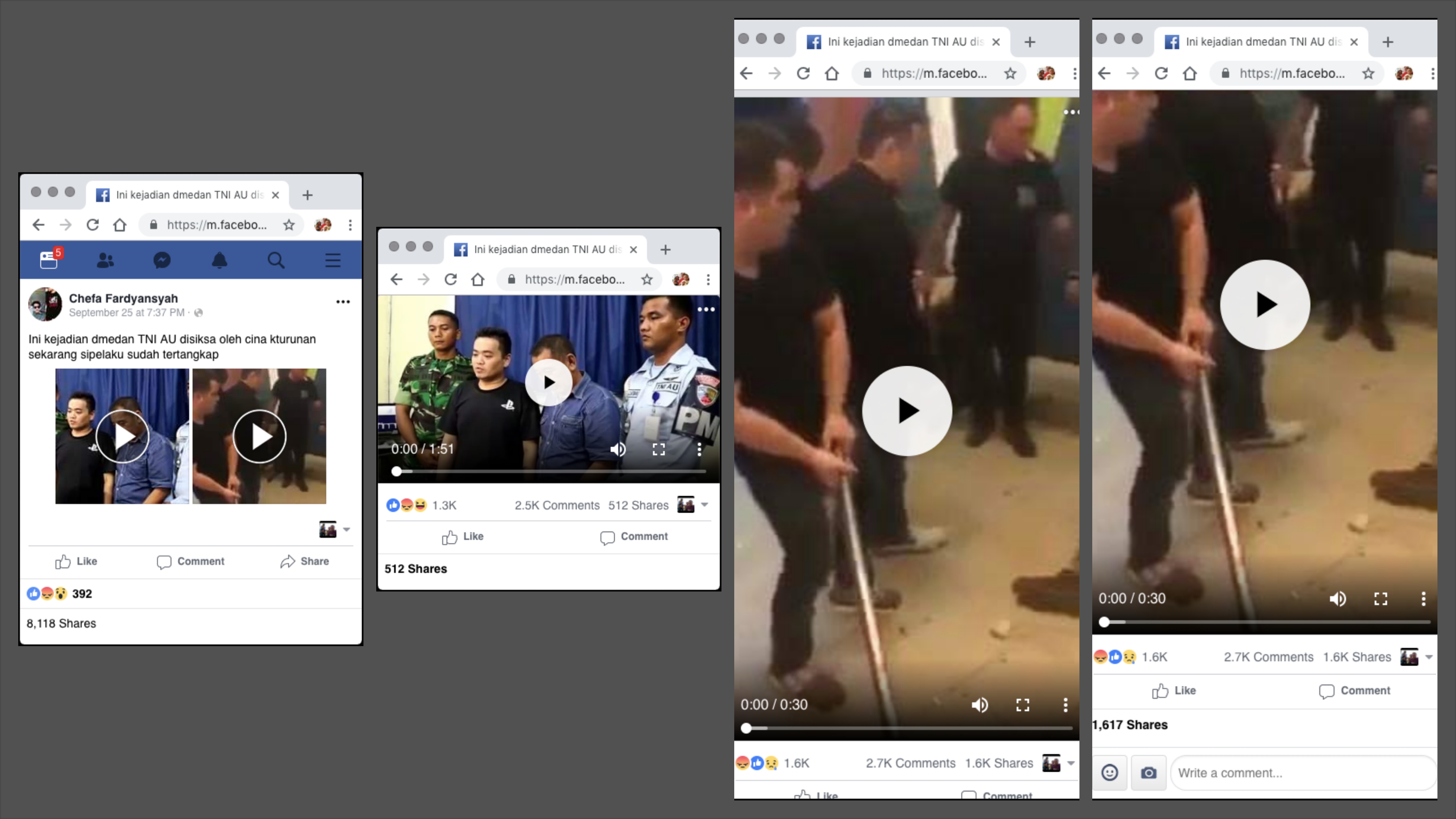 “Ini kejadian dmedan TNI AU disiksa oleh cina kturunan sekarang sipelaku sudah tertangkap”.